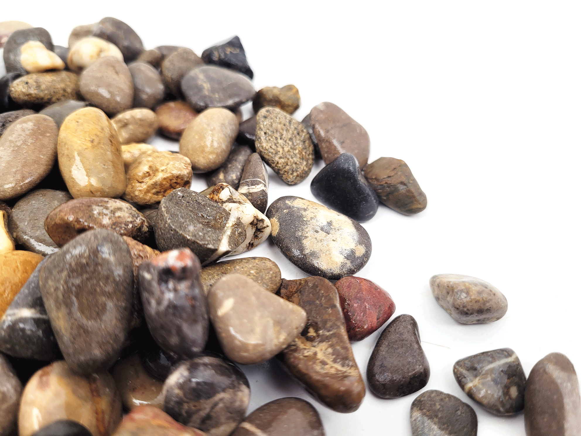 Stream Gravel comes in three size mixes (S, Mix, and L) to suit different aquarium sizes and layouts. The S size mix ranges from 8-20mm, the Mix size mix ranges from 8-40mm, and the L size mix ranges from 20-40mm. This variety of sizes allows you to create a more natural-looking riverbed by combining stones of different sizes.